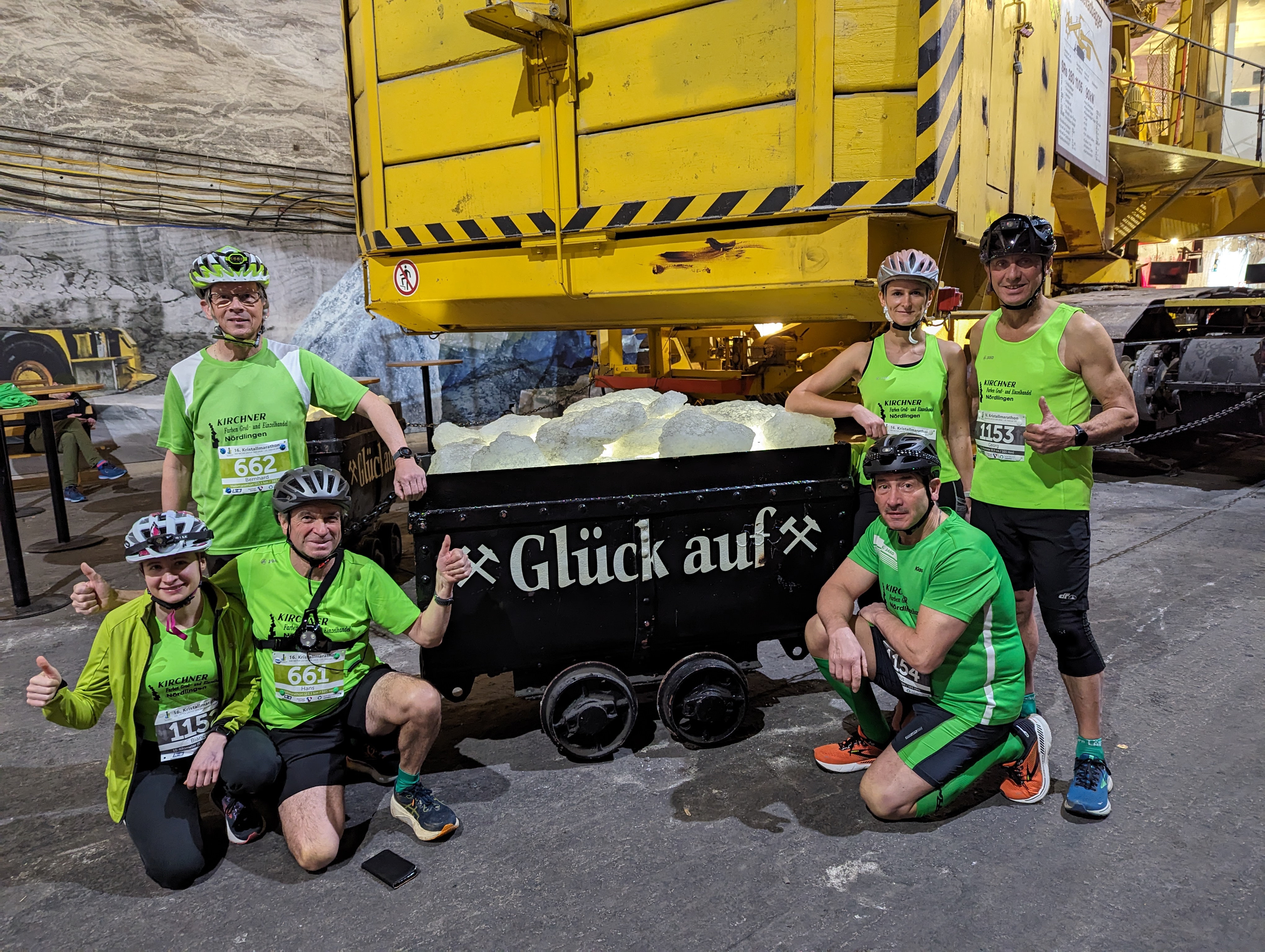 Bereits zum sechszehnten Mal veranstalltete der Triathlonverein Barchfeld e.V. den Kristallmarathon im thüringischen Merkers in der Nähe von Bad Salzungen. Es wurde ein Marathon, ein Halbmarathon und ein 10 Kilometerlauf angeboten. Insgesamt waren nur 750 Teilnehmer zugelassen. Ab 7:30 Uhr in der Früh konnten die Startunterlagen im Eingangsbereich des Erlebnis Bergwerks abgeholt werden. Anschließend ging es für Sportler und Begleitpersonen 500 Meter unter die Erde. Voraussetzung um überhaupt teilnehmen zu dürfen war das Tragen eines Fahrradhelms und einer Stirn- oder Brustleuchte. Nach dem Ausstieg aus den Aufzügen wurden alle mit Lastwagen rund einen Kilometer, bergauf, bergab in engen Kurven zum ehemaligen Großbunker gebracht, wo sonst immer wieder Konzerte stattfinden, an diesem Tag war hier der Start- und Zielbereich der Wettkämpfe. Hier stand für jeden Teilnehmer ein Stuhl zur Ablage und zum Sitzen bereit. Eine halbe Stunde vor dem ersten Start wurde noch eine tolle Lasershow geboten und das Steigerlied gespielt und gesungen.