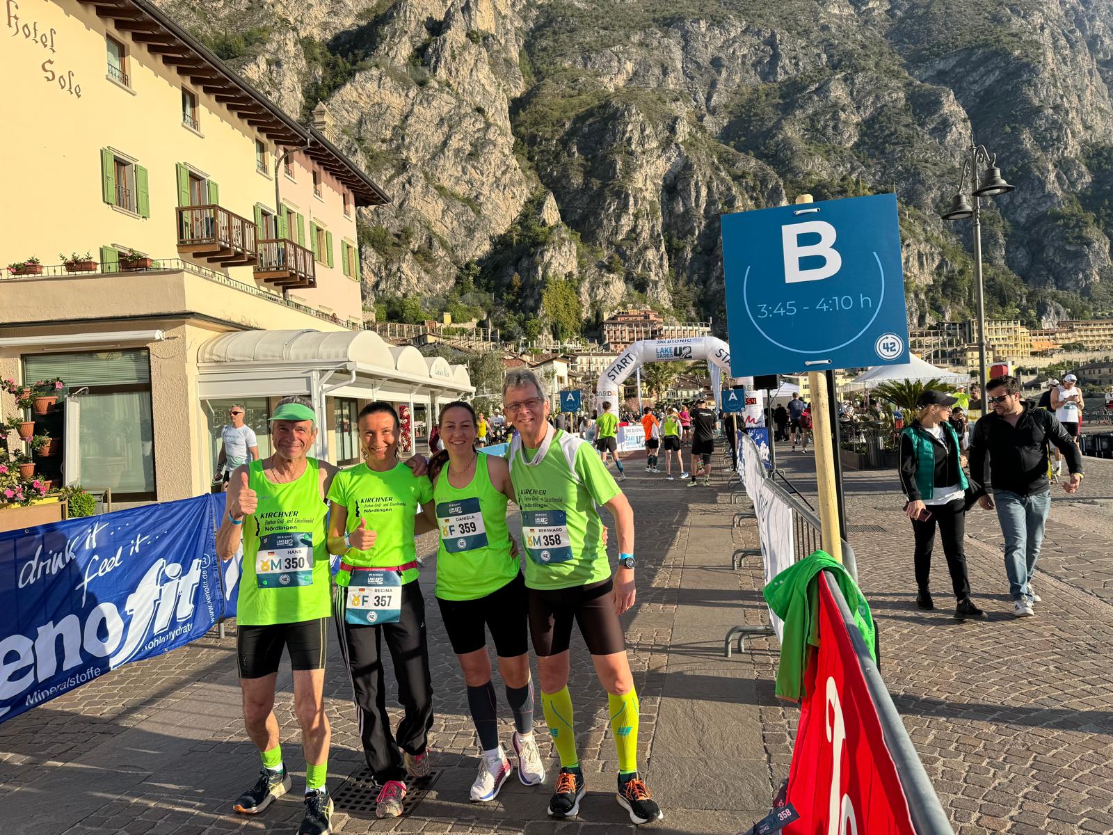 Am vergangenen Wochenende fand erst zum Dritten Mal ein Marathon und Halbmarathon statt. Die tolle Kulisse um den Gardasee mit Urlaubsfeeling reizte auch viele Läuferinnen und Läufer vom Lauftreff des TSV Nördlingen. Deshalb waren 22 Personen einschließlich Begleitpersonen mit dabei. Am Freitag Spätnachmittags wurden bereits die Startunterlagen abgeholt um den Samstag nach einem kurzen Frühstückslauf, Besichtigung der Wasserfälle von Varone, richtig entspannen zu können.