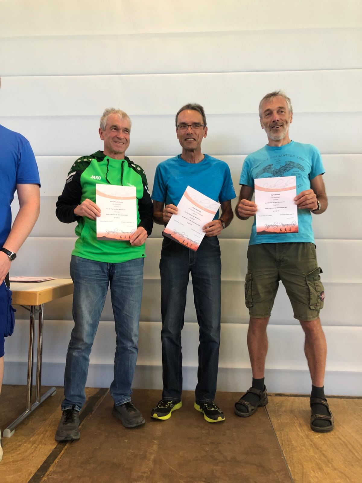 Altersklassensieger M65 von links Hans Niederhuber (3.), Karl Hilsenbek (1.) und Karl Oßwald (2.). (Foto: Anneliese Zinke)