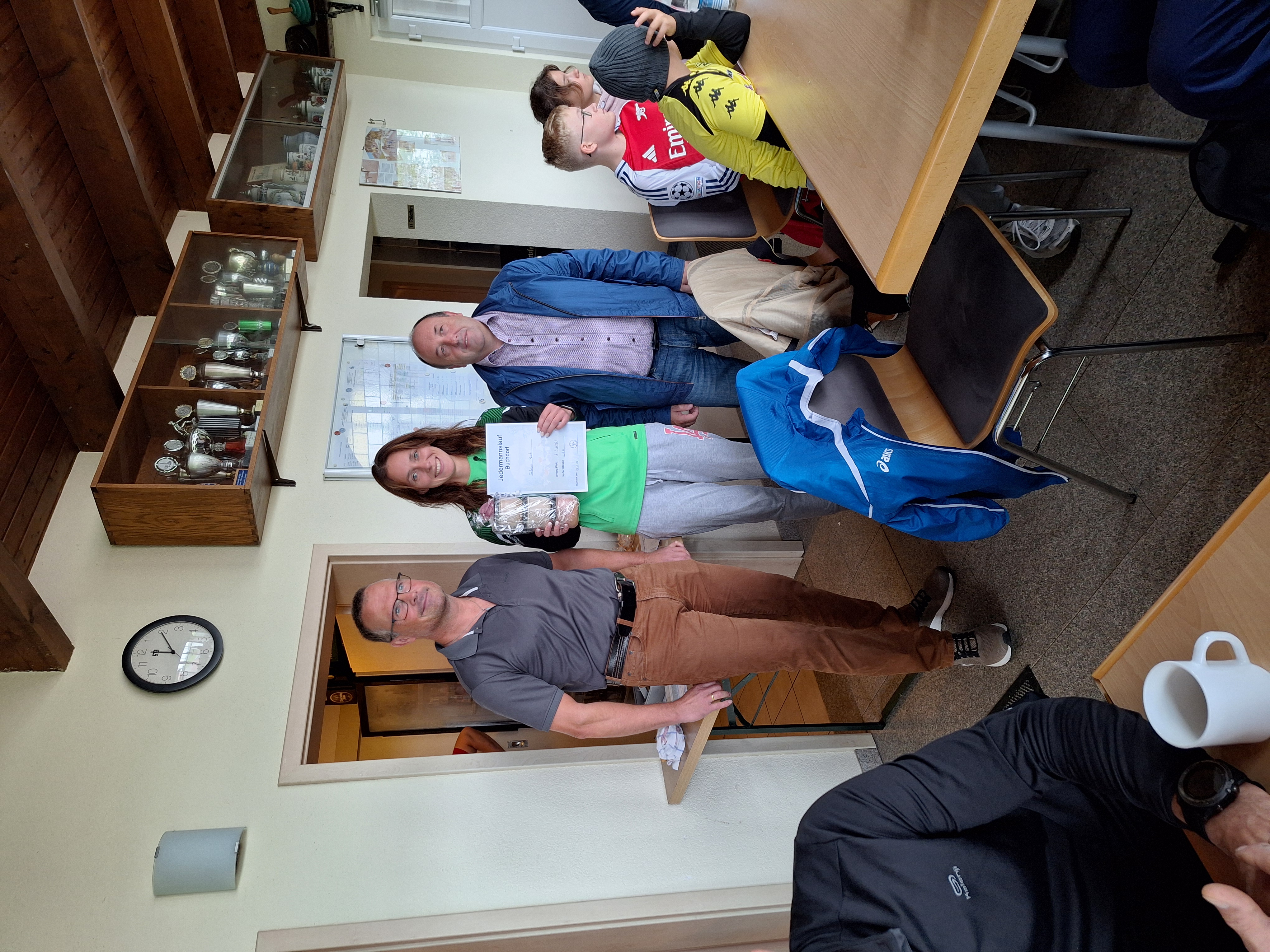 Siegerehrung, 3. Frau Rebecca Bosch zwischen dem Buchdorfer Bürgermeister und dem Vorstand des Ski- und Freizeitvereins Buchdorf. (Foto: Hans Niederhuber)
