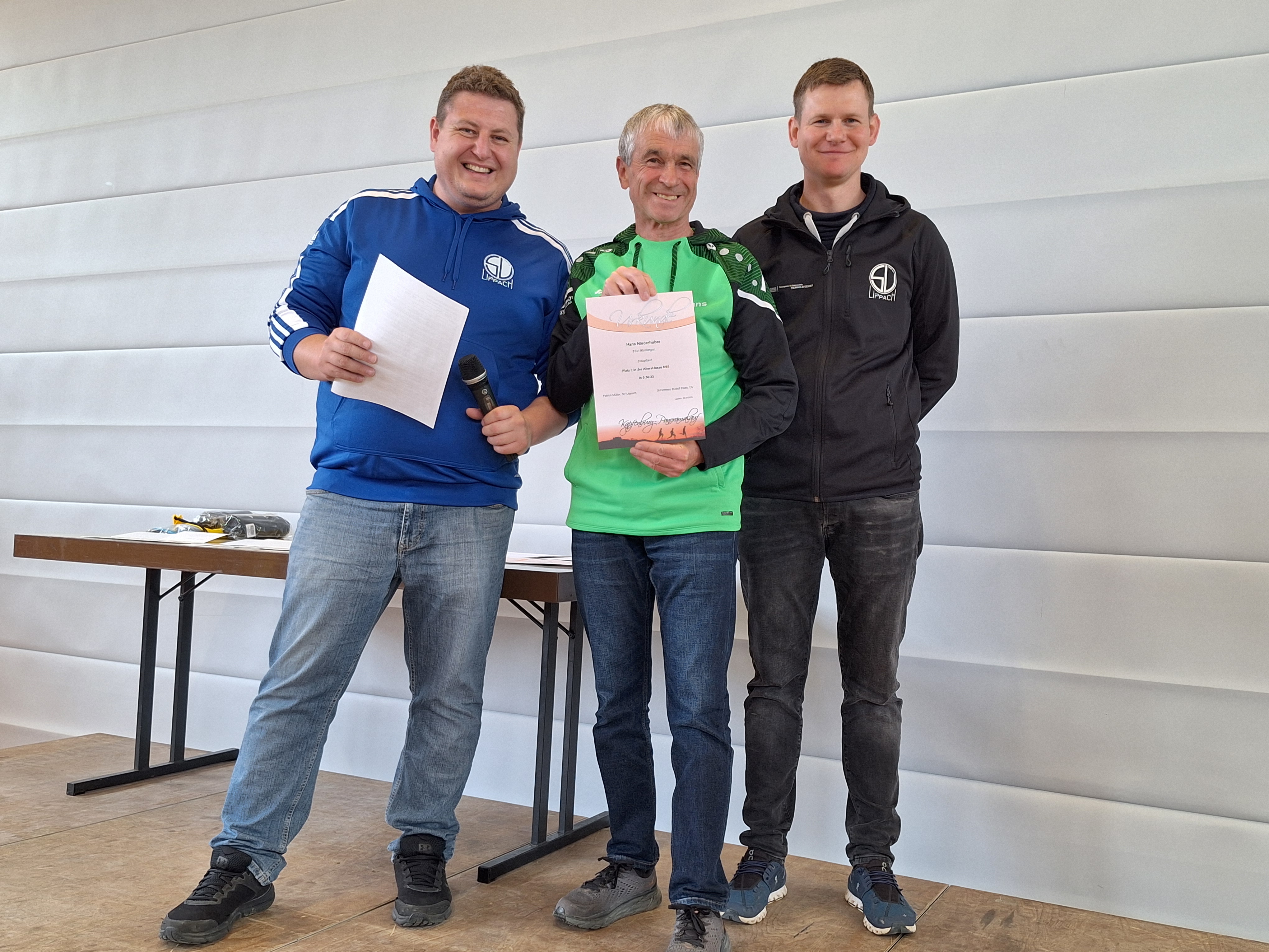 Bei der Siegerehrung in der Mitte Hans Niederhuber 2. M65, links und rechts Veranstalter (Foto: Hans Niederhuber)