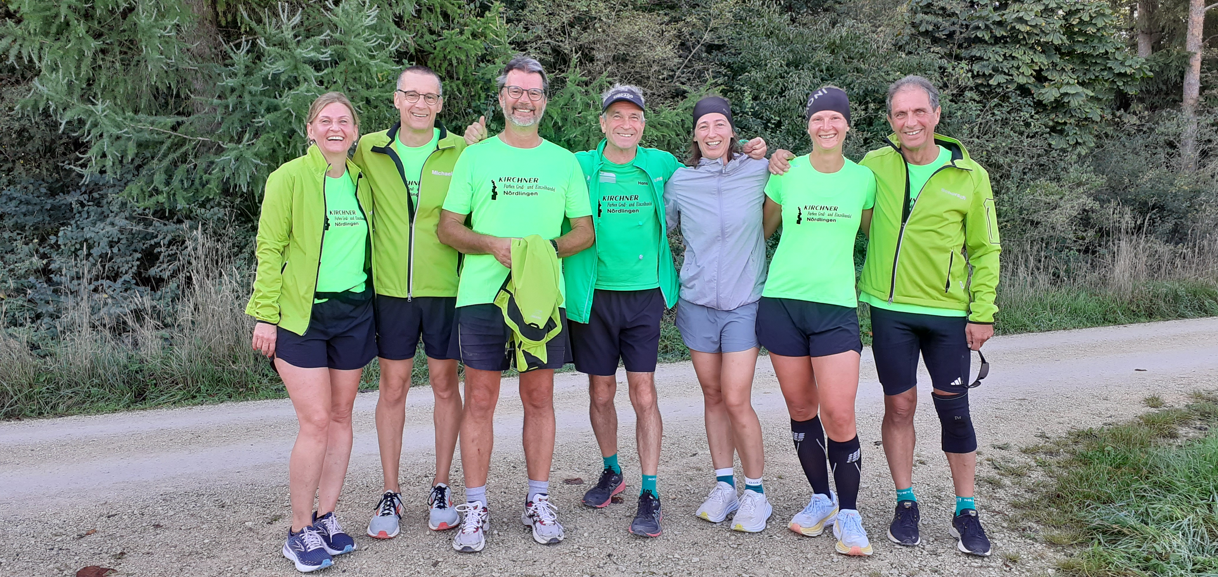 Nach dem Zieleinlauf von links Sabine Stutz, Michael Kosiurak, Hans-Peter Schiele, Hans Niederhuber, Nicole Hahn, Ulrike Schönmüller, Georg Eberhardt (Foto. Hans Niederhuber)